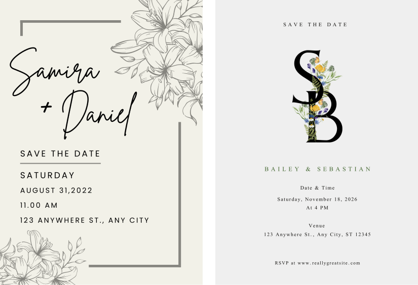 Jika perlu, bandingkan contoh undangan yang satu dengan lain untuk mengetahui kekurangan atau kelebihan masing-masing. Beberapa informasi penting yang tidak boleh Passioners lewatkan adalah tanggal, waktu, dan lokasi acara. Jika Passioners melaksanakan akad dan resepsi secara terpisah, pastikan untuk mencantumkan informasi mengenai kedua acara dengan jelas.